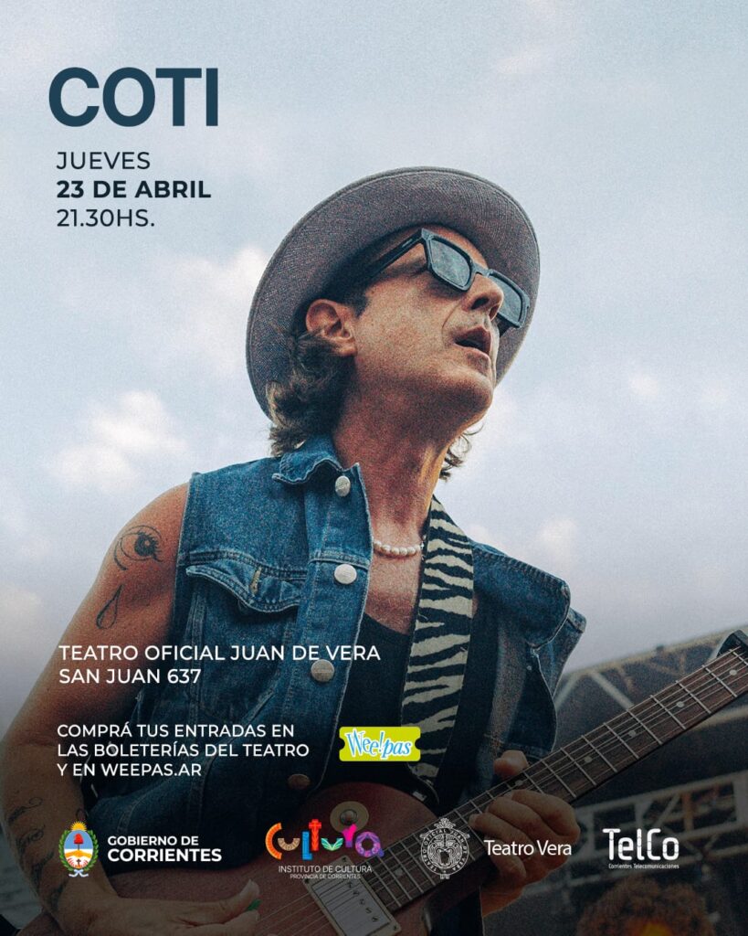 El reconocido cantautor argentino Coti se presentará este jueves 23 de abril, a las 21,30 hs. en Teatro Oficial Juan de Vera con un show imperdible que recorrerá los grandes…