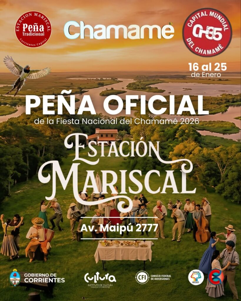 En el marco de la 35.ª Fiesta Nacional del Chamamé, la Estación Mariscal fue declarada una vez más por la presidenta del Instituto de Cultura, Lourdes Sánchez, como Peña Oficial. Somos el punto de encuentro natural para quienes desean prolongar la magia del Anfiteatro y seguir celebrando nuestra identidad.