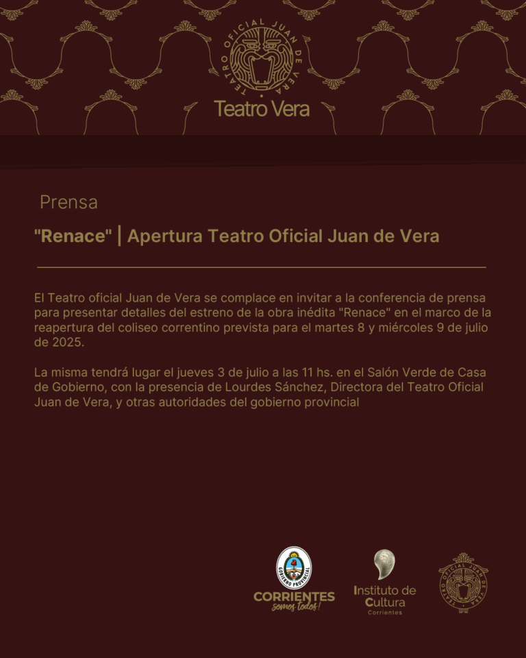 Este martes 8 desde las 19.30 hs se llevará adelante el acto de reapertura del Teatro Oficial Juan de Vera por parte del Gobierno de la provincia de Corrientes en las escalinatas del coliseo correntino. El acto será de acceso…