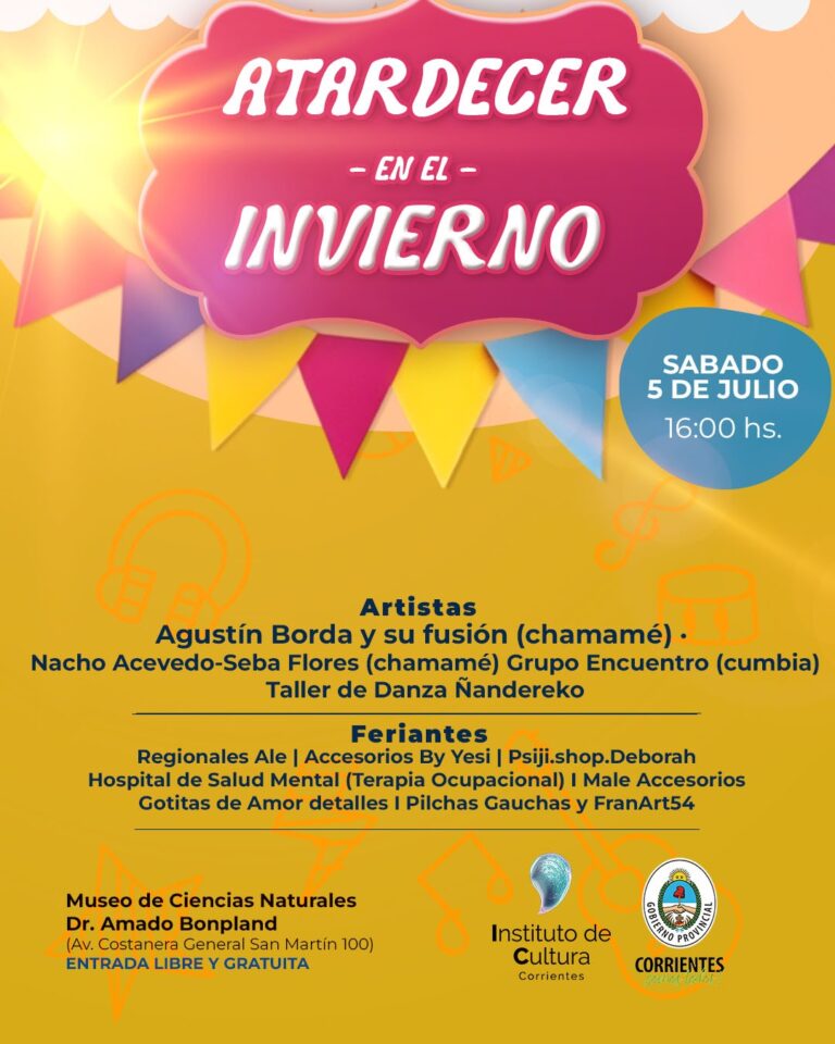 El Gobierno de Corrientes, a través del Instituto de Cultura, organiza la propuesta “Atardecer en el Invierno”. La actividad que incluye música, danza y emprendedores llegará este fin de semana a dos lugares: como es habitual, este sábado 5 de…