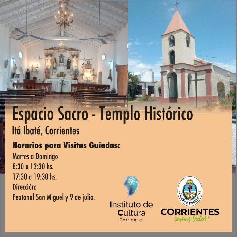 El Instituto de Cultura de Corrientes te invita a una visita guiada por el «Espacio Sacro Templo Histórico» de Itá Ibaté Este significativo templo, cuya piedra fundamental fue bendecida por el presbítero Juan Cloquell, Párroco de Caa Catí, el 30…