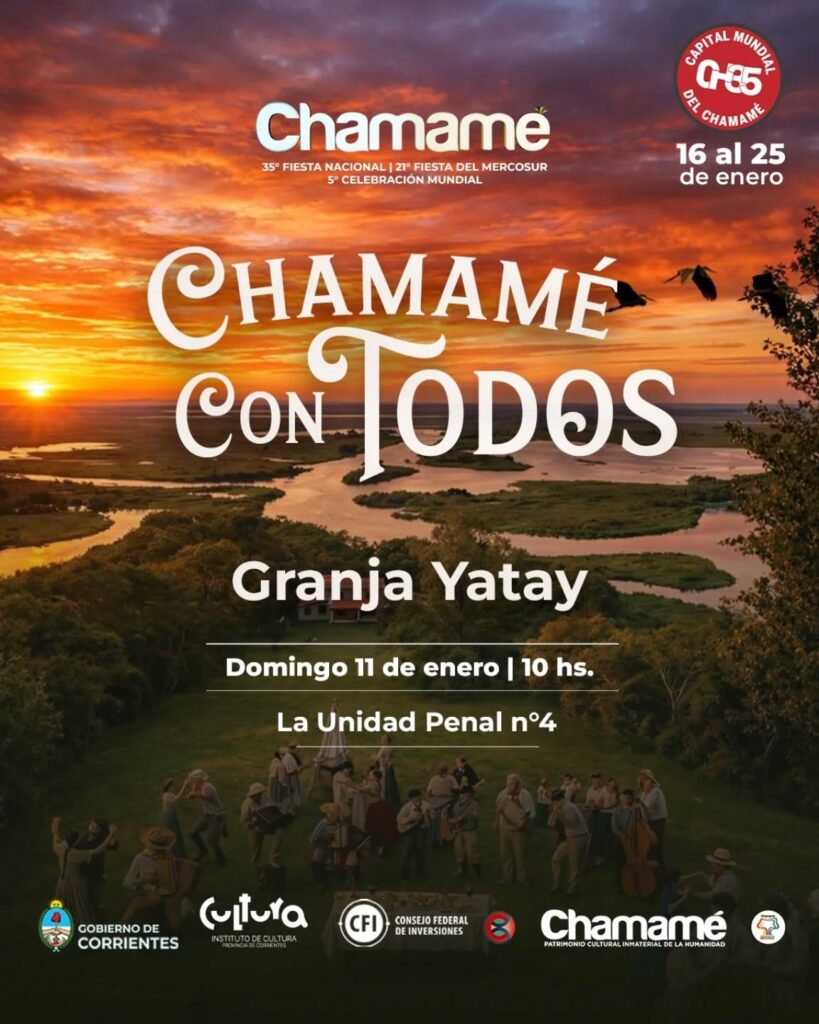Chamamé con Todos en la Granja YatayFiesta Nacional del Chamamé La 35ª Fiesta Nacional del Chamamé sale al encuentro de su gente con el ciclo “Chamamé con Todos”. Queremos que la música y el baile lleguen a cada rincón, celebrando nuestra cultura en comunidad.