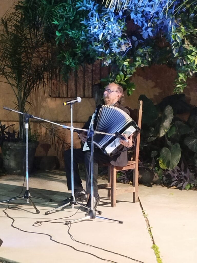 En tanto que a las 20:15 fue el turno de la música en vivo a cargo del destacado acordeonista Raúl Alonso, quien con su maestría y didáctica supo exponer sobre las variantes del Chamamé y de otros géneros musicales de la región como chotis, chamarritas y polcas.