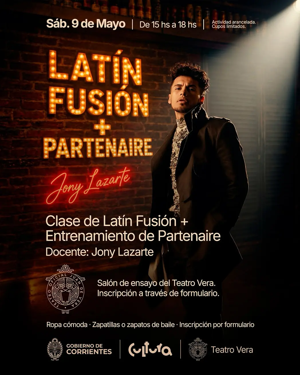 Publicado el 28.4.26 El Teatro Oficial Juan de Vera abre su salón de ensayo para una propuesta intensiva de formación en danza junto a Jony Lazarte. Se trata de una clase de Latín Fusión + entrenamiento de partenaire pensada para bailarines de nivel intermedio-avanzado que buscan potenciar su técnica, conexión y versatilidad en escena.