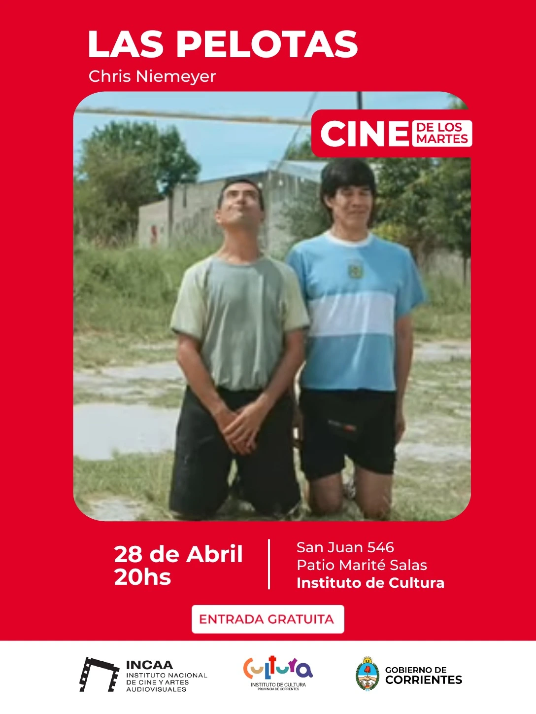 Publicado el 27.4.26. El ciclo “Cine de los Martes” invita a descubrir el talento audiovisual correntino. El Patio Marité Salas del Instituto de Cultura de Corrientes (San Juan 546) será escenario este martes 28 de abril a las 20 de una propuesta especial dedicada a la producción local: una selección de cortometrajes con la presencia de sus realizadores, quienes dialogarán con el público sobre sus procesos creativos.