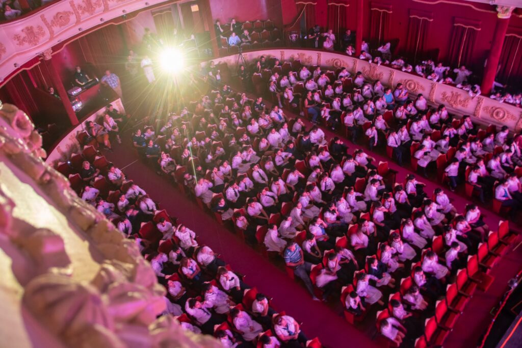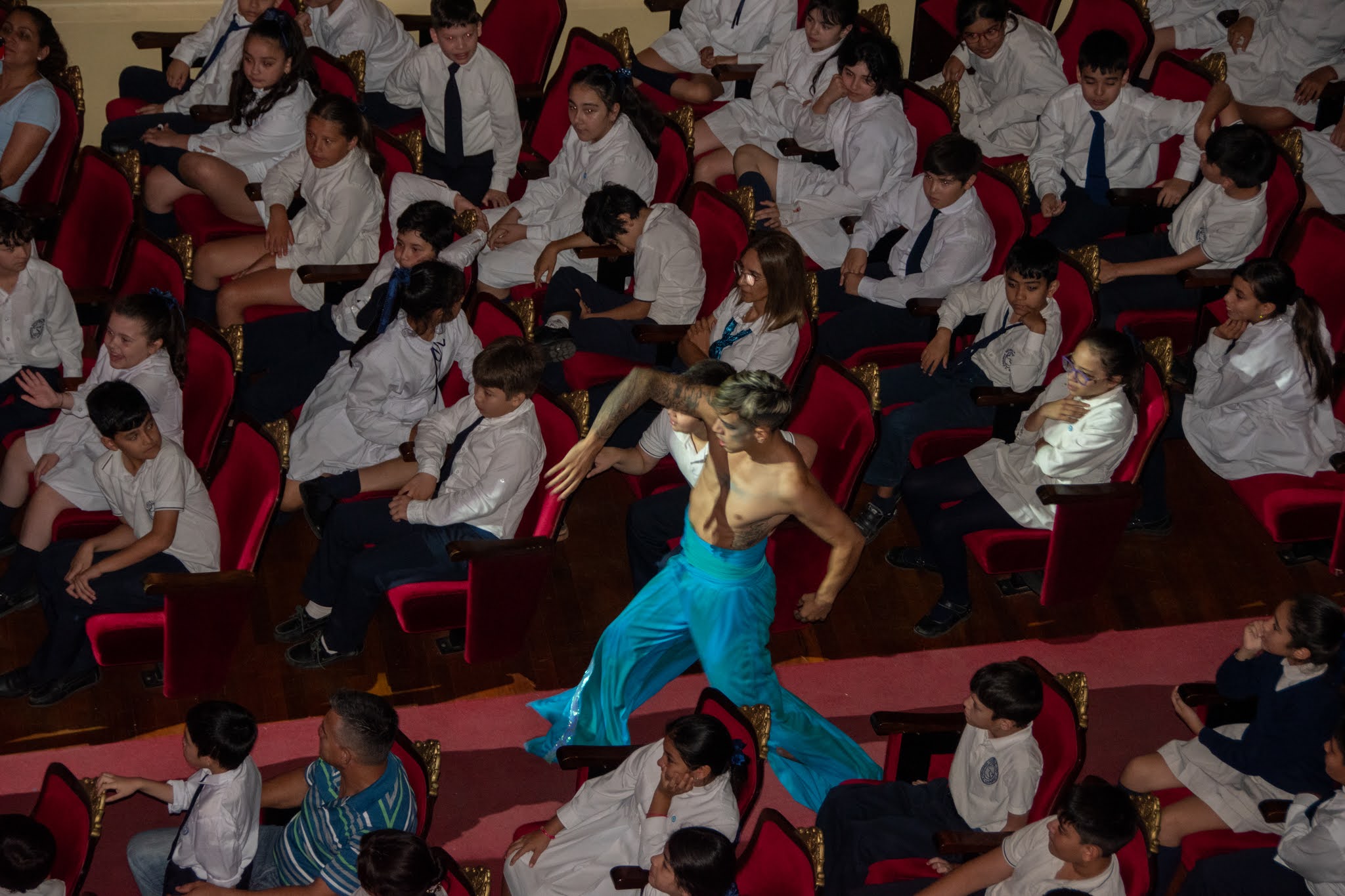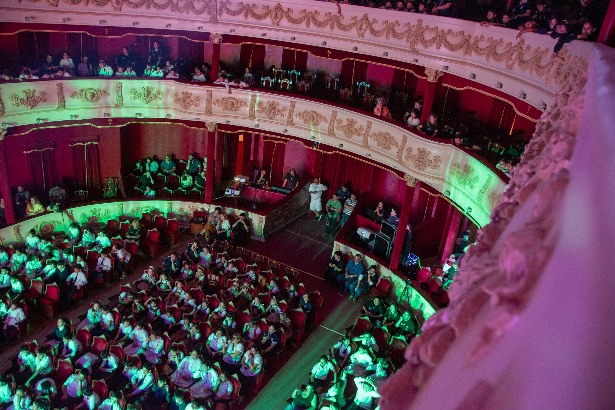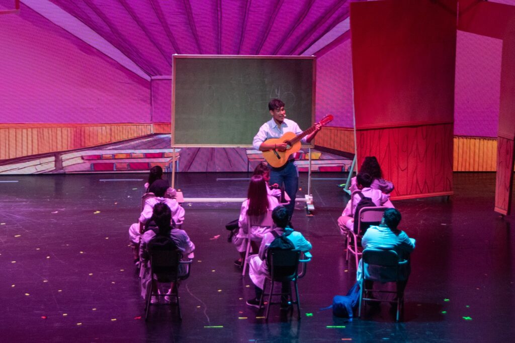 Con un entusiasmo difícil de contener, los chicos y sus docentes hicieron fila para acceder al teatro, mientras por dentro el elenco y el equipo técnico; además de los docentes del equipo de Educaplay que se ocupa de realizar la transmisión en vivo vía Streaming por el canal de youtube en cada representación, se alistaban para entrar en acción en una nueva jornada artística.