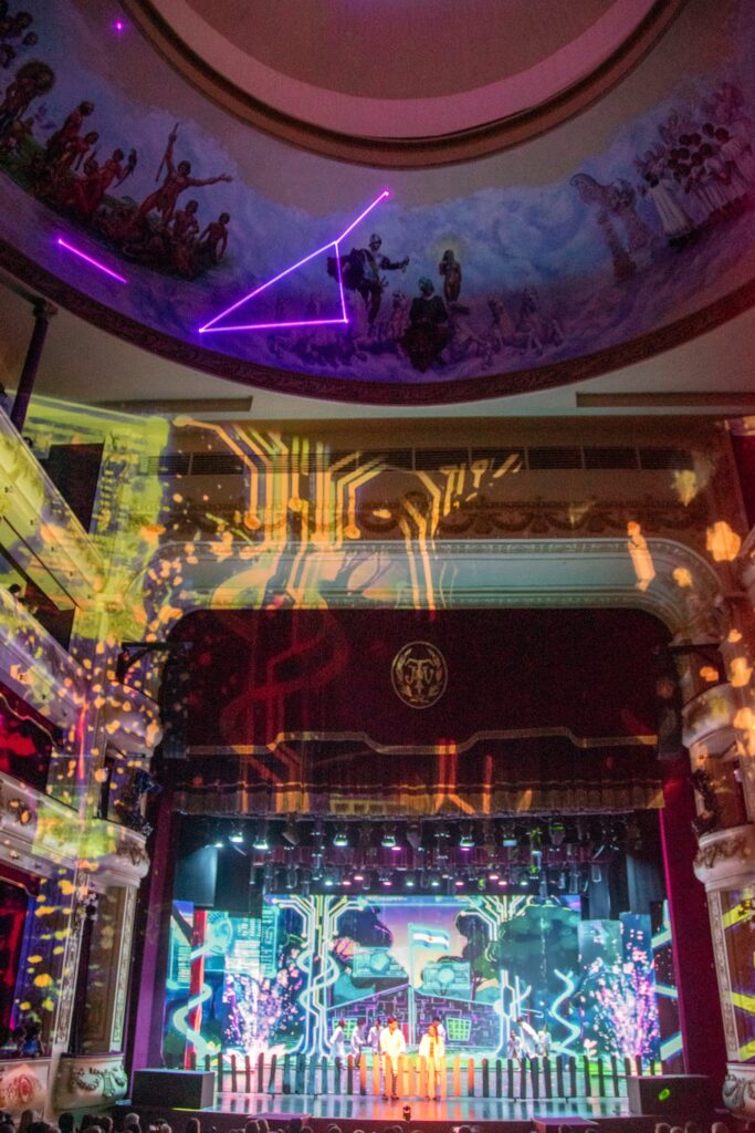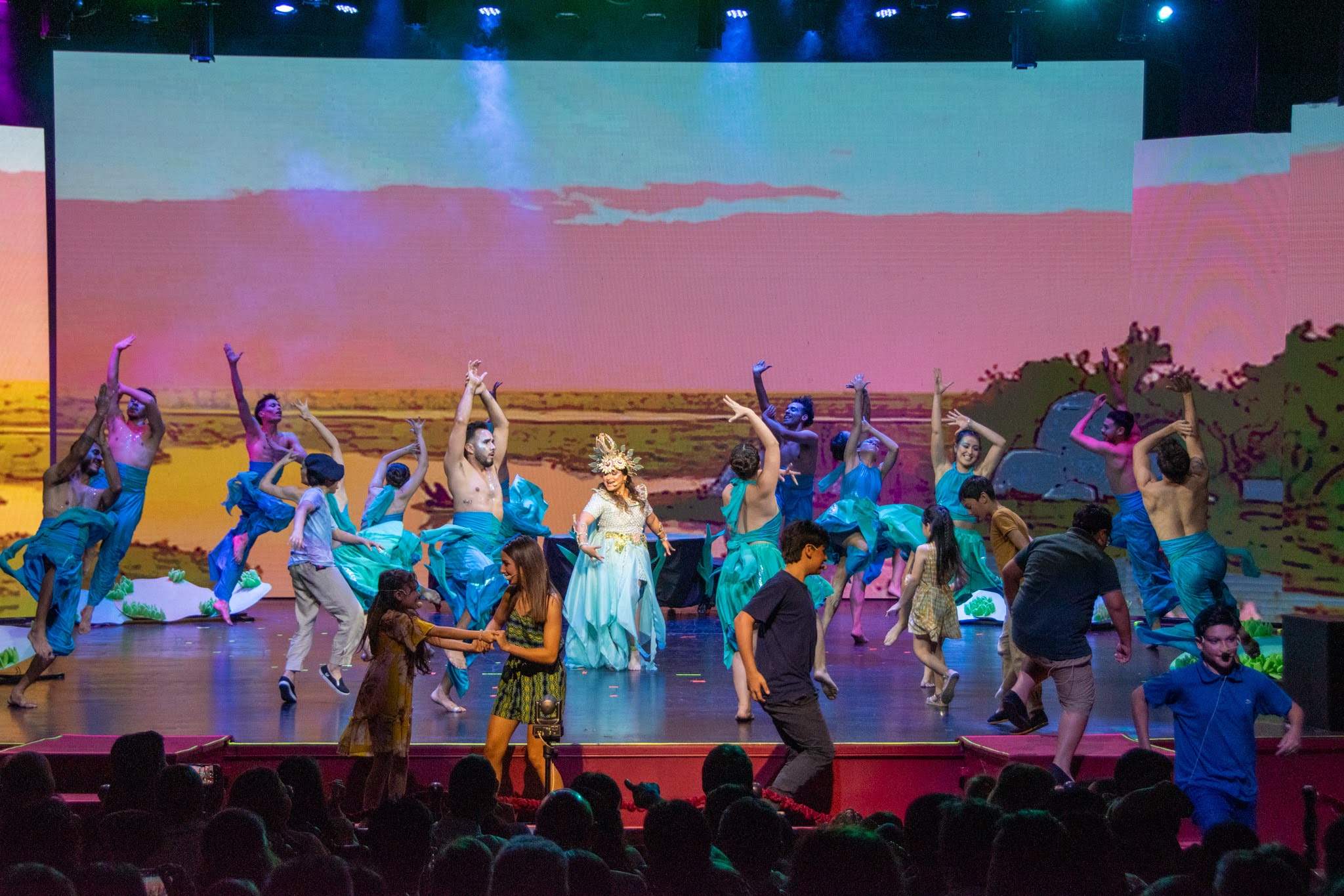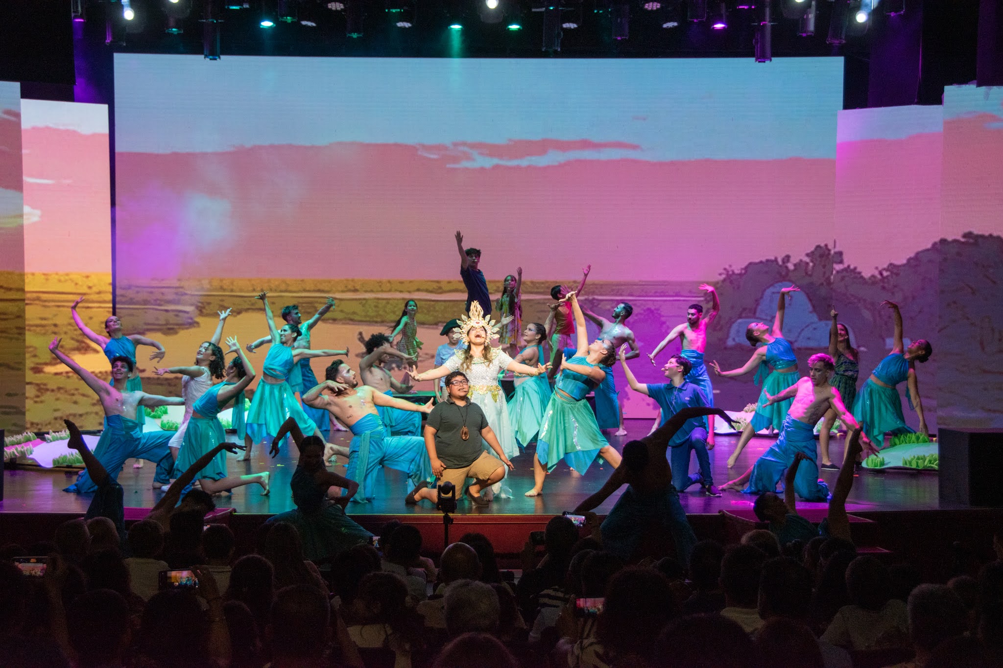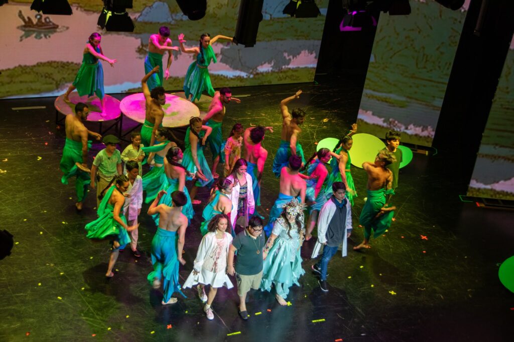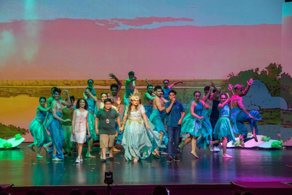 Se estrenó el miércoles con dos funciones y este jueves a las 10 se representa la tercera puesta en escena de la obra en un viaje sensorial que celebra nuestra identidad correntina, combina tecnología de vanguardia y pone en valor el alma de nuestros esteros. Además de los chicos de las escuelas, niños que son pacientes oncológicos fueron especialmente invitados a disfrutar del espectáculo. En la noche de este jueves, será la función abierta al público en general y con entradas agotadas. Tanto los artistas como los espectadores destacan “la maravilla” de la experiencia.