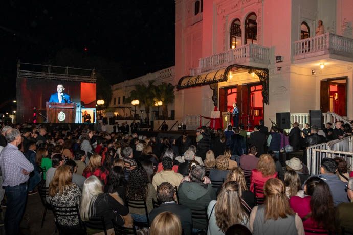 También la calle sirvió de palco para el público en las dos jornadas, ya que fue transmitida en vivo mediante pantalla dispuesta sobre calle San Juan, dos noches atravesadas por la emoción y el entusiasmo que generó volver a ver nuevamente el teatro en funcionamiento, con aplausos surcando el interior de la sala y la calle en simultáneo. La obra y acto de reapertura del Teatro Oficial Juan de Vera en vivo pueden disfrutarse desde el canal oficial de YouTube del Gobierno de Corrientes en https://youtu.be/xWjx3QSrszI