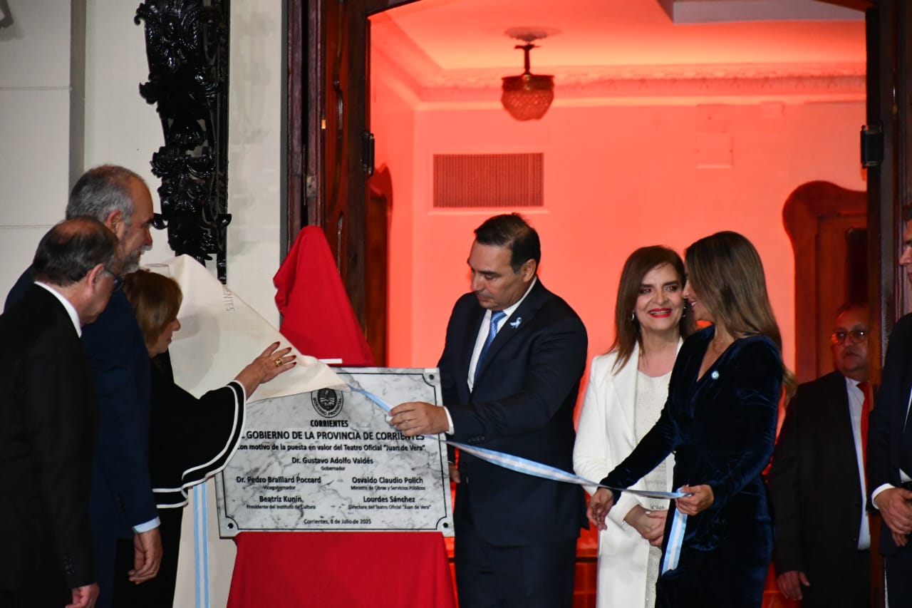 Tras las obras de modernización, refacciones y puesta en valor del histórico edificio del coliseo correntino iniciadas en 2022 por el Ministerio de Obras y Servicios Públicos como iniciativa del Gobierno provincial y bajo la dirección de Lourdes Sánchez, el Teatro Oficial Juan de Vera abrió formalmente sus puertas con la celebración de un acto protocolar del que participaron autoridades provinciales y municipales, además del acompañamiento del público en general y la comunidad cultural de Corrientes.