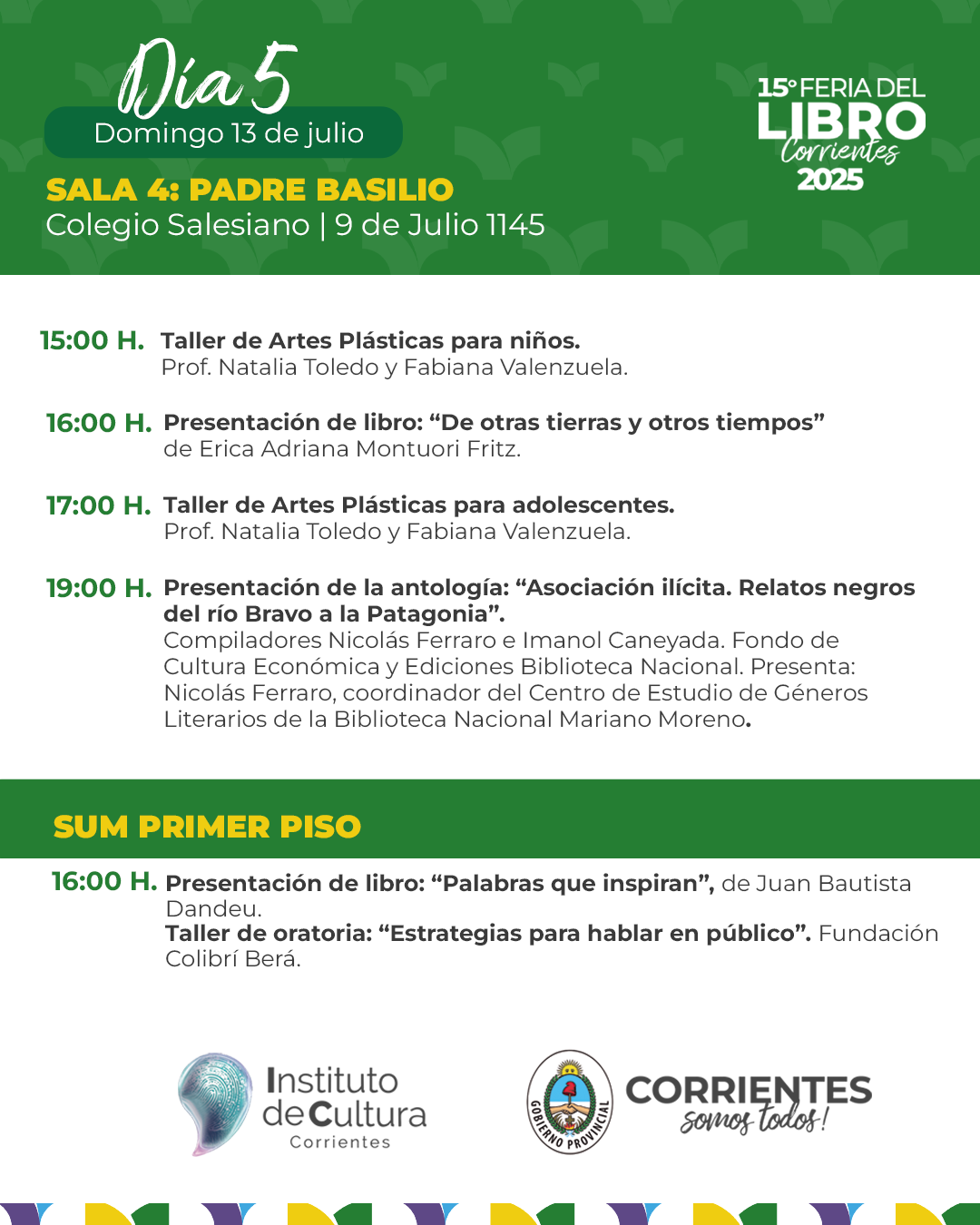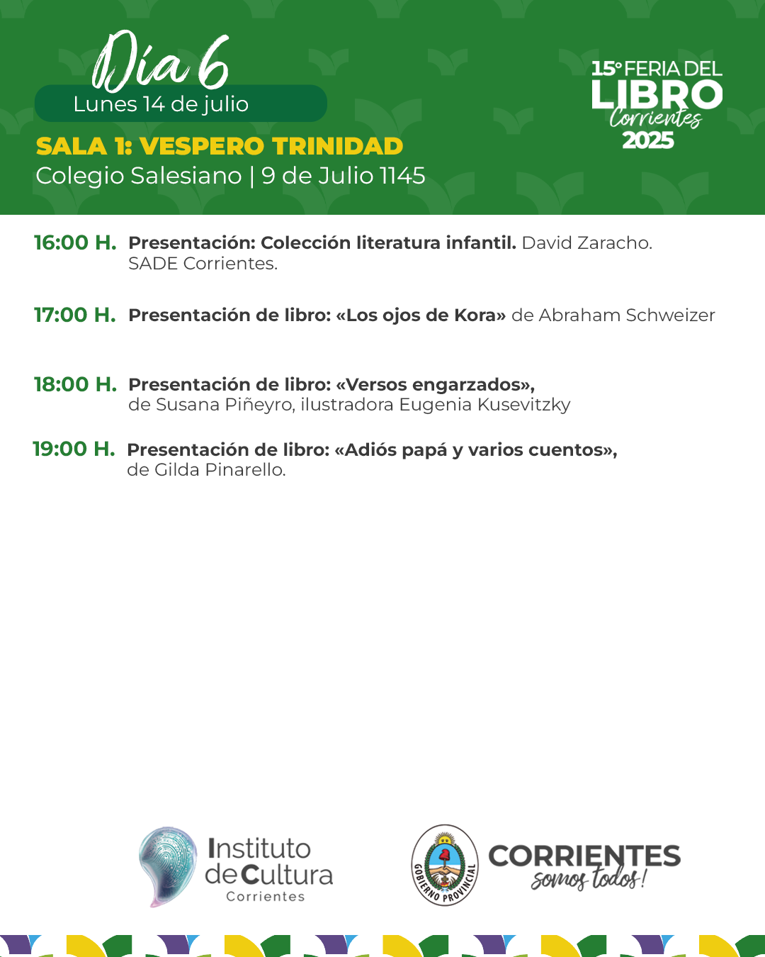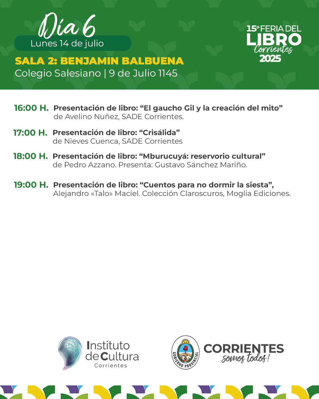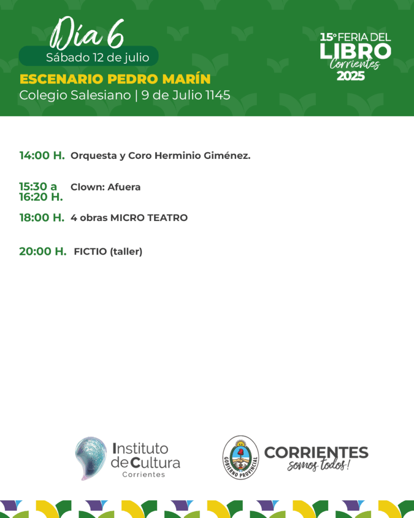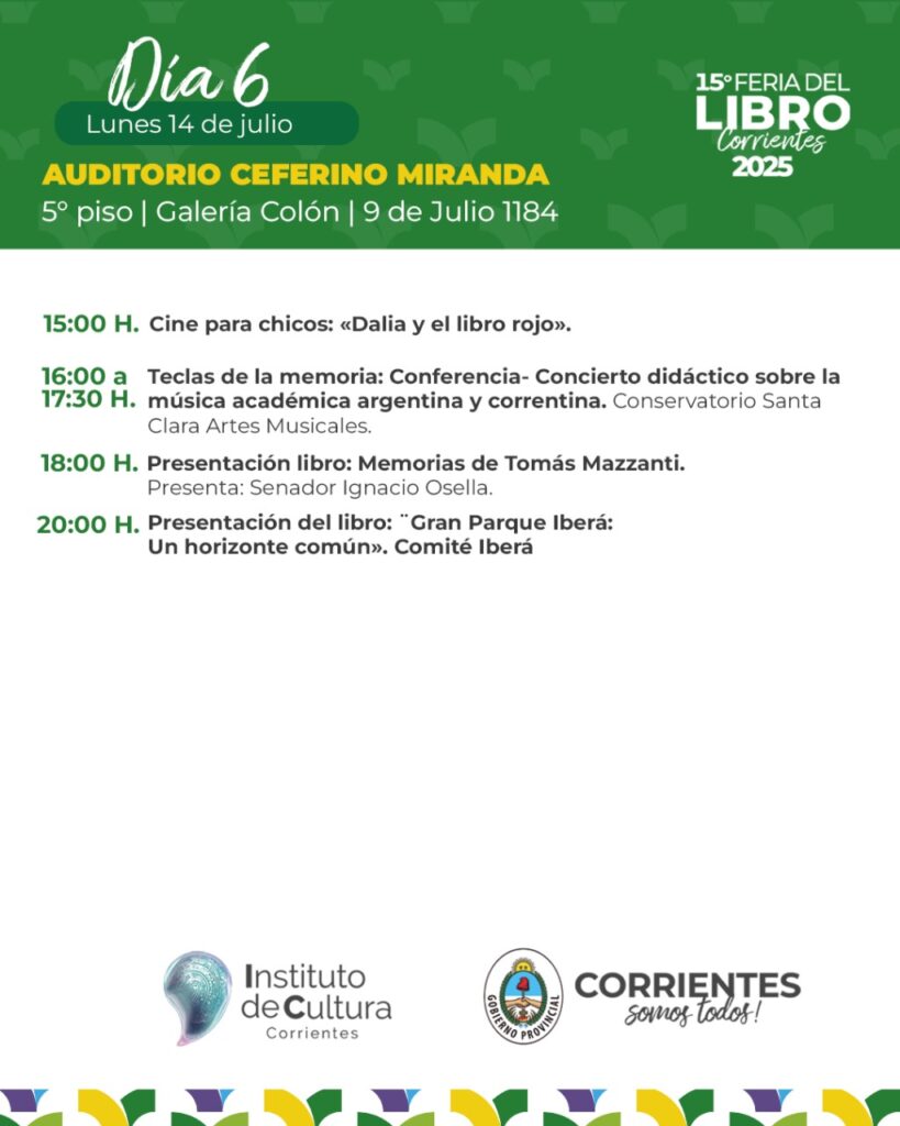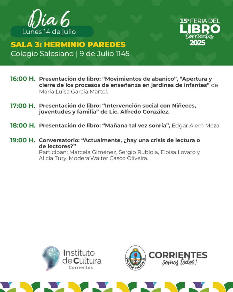 Programación – Lunes 14 de julio de la 15ª Feria Provincial del Libro