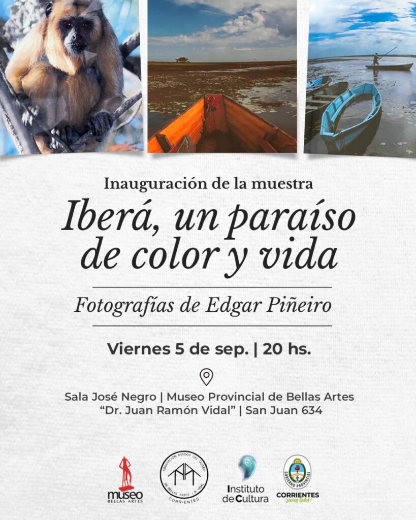 El Museo de Bellas Artes «Juan Ramón Vidal» tiene el placer de invitarte a la inauguración de «Ibera, un paraíso de color y vida», una muestra fotográfica que captura la belleza y la biodiversidad de los Esteros del Iberá.