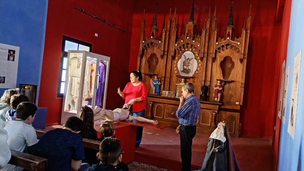 En el salón principal, la emoción se eleva. Aquí, podrás contemplar las imágenes guaraní-jesuíticas talladas en madera policromada que dan vida a este museo sacro. Estas valiosas esculturas son mucho más que obras de arte son un espejo de la profunda fe religiosa del pueblo correntino, el espíritu inquebrantable que animó a quienes las transportaron y custodiaron como un tesoro protector digno de absoluto respeto. Sentirás la historia en cada curva de la madera y expresión.