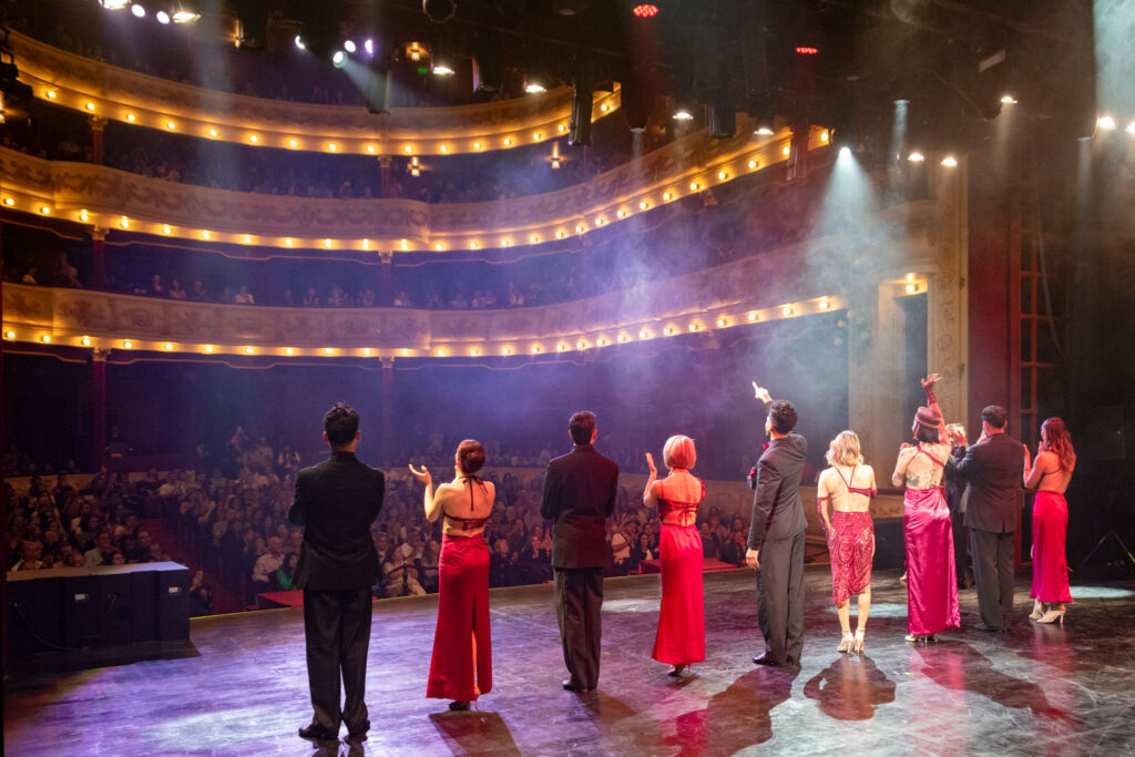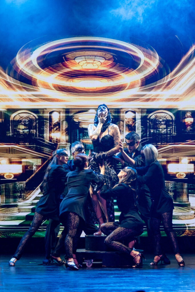«Bloody Tango» es un espectáculo teatral que reimagina el tango a través de una experiencia sensual y provocadora, con un elenco de bailarines y cantantes de alto nivel artístico, encabezado por Noelia Marzol, Jonathan Lazarte y Ana Devin, acompañados por once artistas en escena.