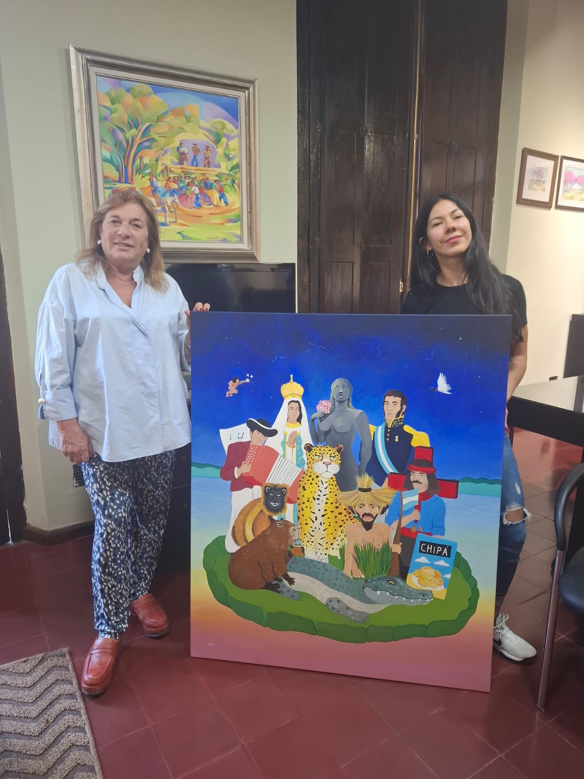 Hoy la presidente del Instituto de Cultura, Beatriz Kunin, recibió la donación de “La correntinidad cruzando el río”, creación de la talentosa artista Anísima.